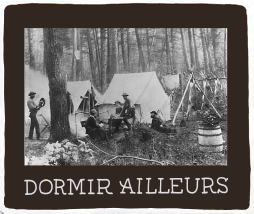 Dans une tente-cabane avec un plancher et chauffée à bois comme l'utilisaient les trappeurs et les prospecteurs dans les Montagnes Rocheuses
